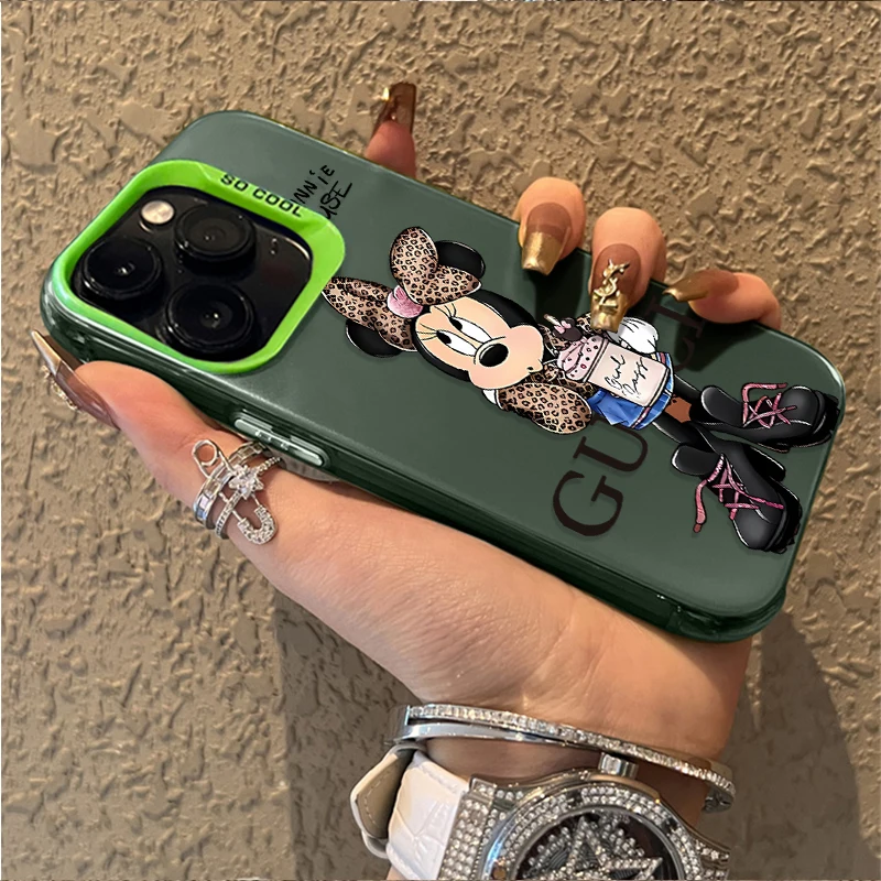 Funda chapada Minnie con estampado de leopardo a la moda para Samsung Galaxy S25 FE Note 20 S21 Plus S24 Ultra S23 S22 A56 A36 A26 5G A16 A06 4G